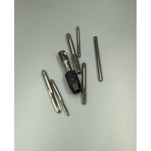 В комплект входят метчики разных размеров и держатель для удобной работы. Компактный набор подходит как для мастерской, так и для домашнего использования.